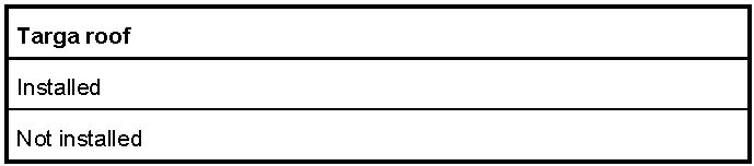 12. Select Targa roof and code with F8.