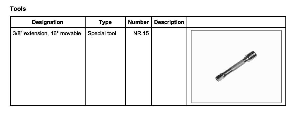 4. Unscrew the front fastening screw -arrow- of the air conditioning compressor. Due to the restricted accessibility, the use of a 3/8" extension, 16° movable NR.15 with a long Torx E10 socket wrench is recommended. To lift out the air conditioning compressor, the screw must be pulled upwards and held in position.