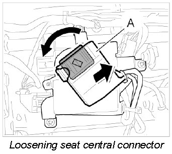 1. Turn seat central connector -A- at AWS holder to the left and remove from the holder.