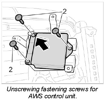4. Unscrew the three fastening screws -2- of the AWS control unit and remove the control unit.
