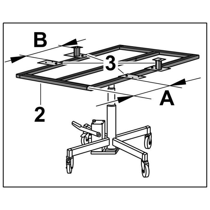1.3. Align holder -3- on retaining frame -2- with => dimension A: 600 mm and the=> dimension B: 315 mm+/-5 mm.