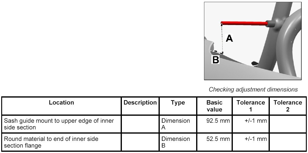 1. Dimension A from centre of sash guide mount (round material as an aid) to top of inner side section.