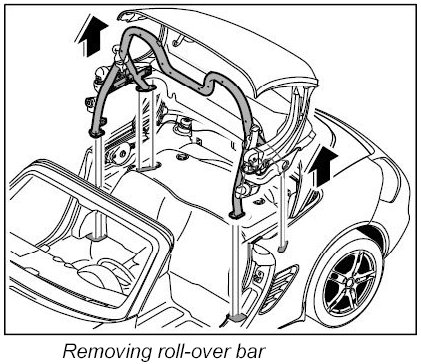 - The roll-over bar can only be removed from the vehicle together with the hood.