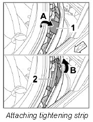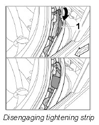 7. Disengage tightening strip -1- (-arrow-).