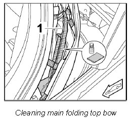 5. Clean main folding top bow -1- in the marked area on the inside and outside with isopropanol.