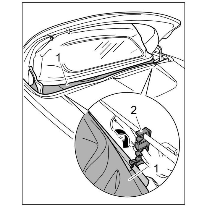 3. Engage strip on cloth covering -1- upwards into the combination holder -2- at the left and right.