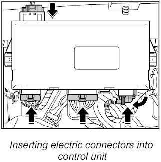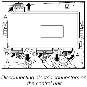 2. Release electric connectors -A- on the control unit and disconnect them.