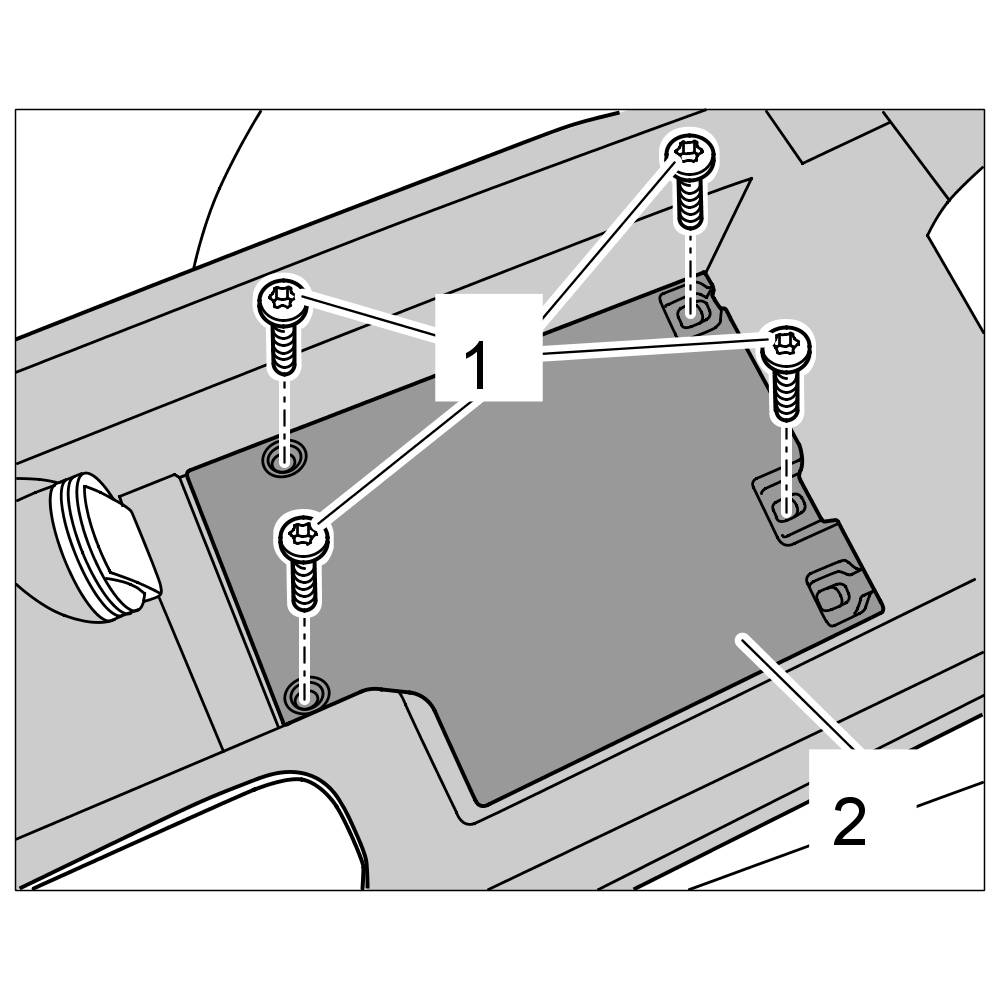 4.2. Fit centre console floor at the rear -2- and secure with the fastening screws -1-.