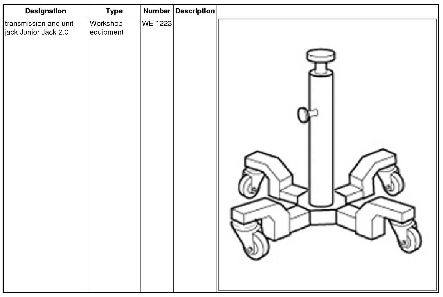 8. Support engine using transmission and unit jack Junior Jack 2.0 WE 1223 and GA passenger car transmission plate WE 1224 at the oil pan.