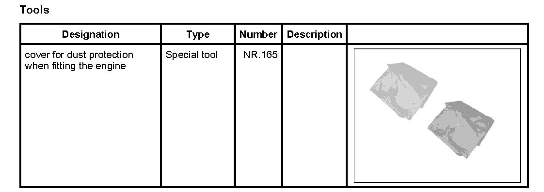 --> Use the cover for dust protection when fitting the engine NR.165 on the engine assembly support.