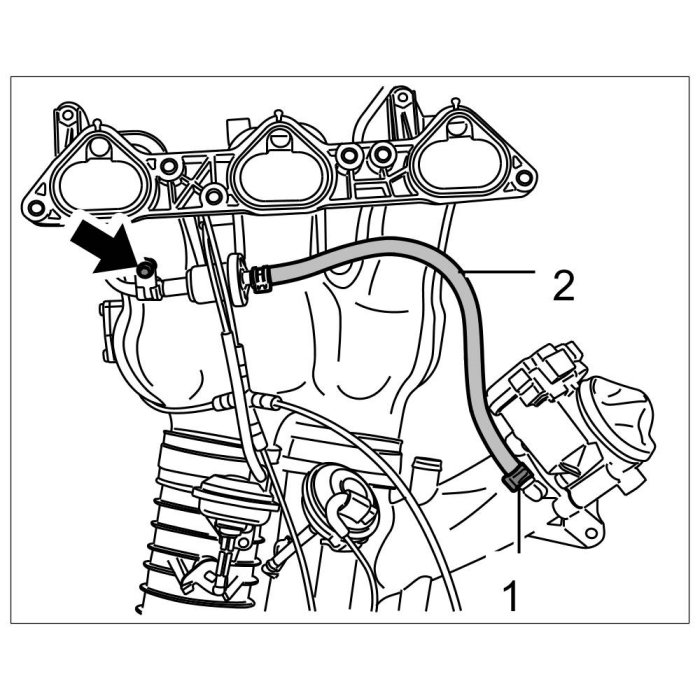 2. Loosen spring band clamp -1- and pull off hose -2- on throttle body.