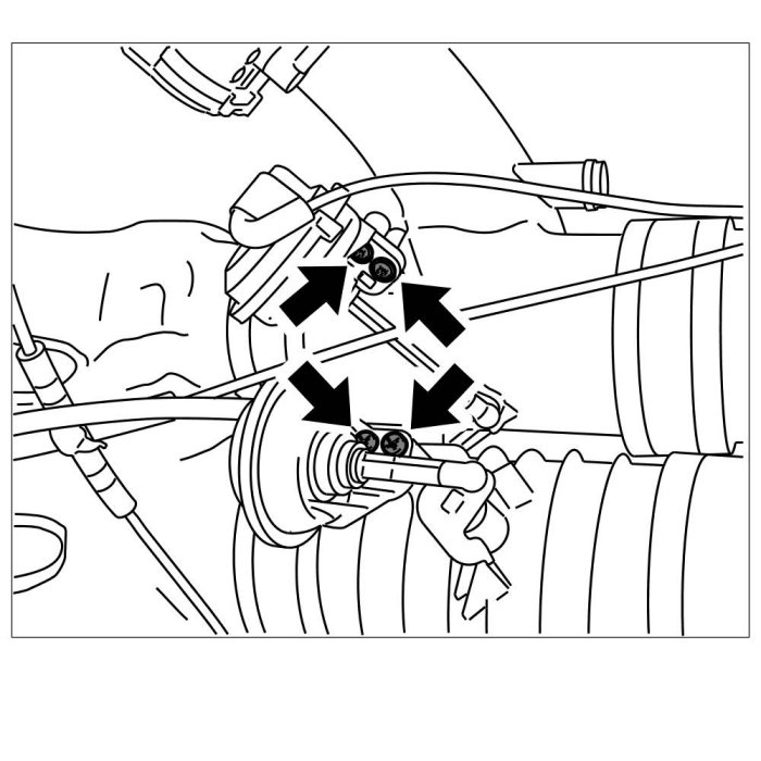 8. Remove throttle body by unscrewing the four Torx screws (M6 x 50) -arrows-.
