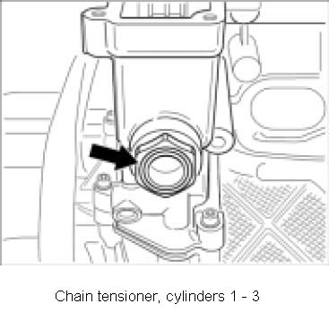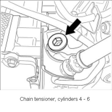 8. Remove the chain tensioner for cylinders 4 - 6.