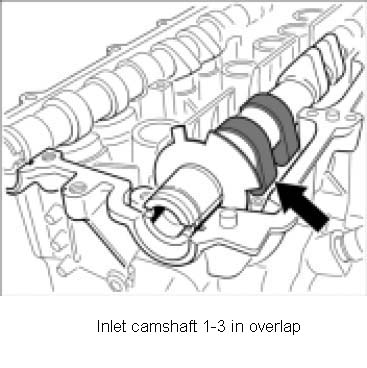 ^ Make sure that the bearing sleeve on the inlet camshaft is positioned correctly.