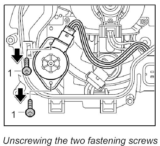 1. Unscrew the two fastening screws -1- for the servo motor.
