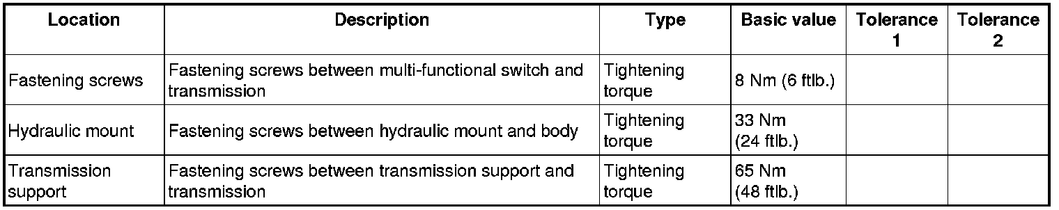 The fastening nuts of the transmission support must never be loosened at the hydraulic mount because otherwise the transmission brackets will be damaged.
