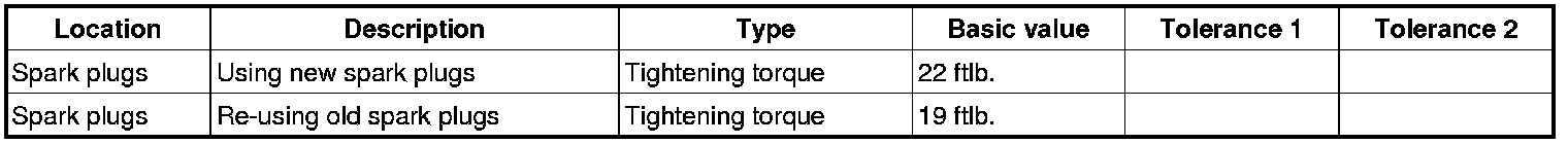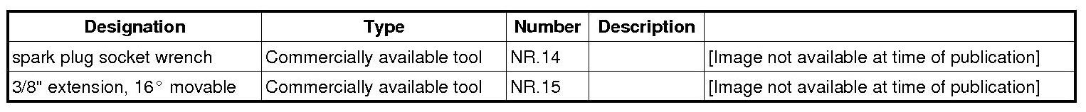 1. Install spark plugs using spark plug socket wrench NR.14 and 3/8" extension, 16° moveable NR.15. The tightening torque is reduced if the spark plugs are removed and installed again for another activity. Do not get spark plugs mixed up during reinstallation.