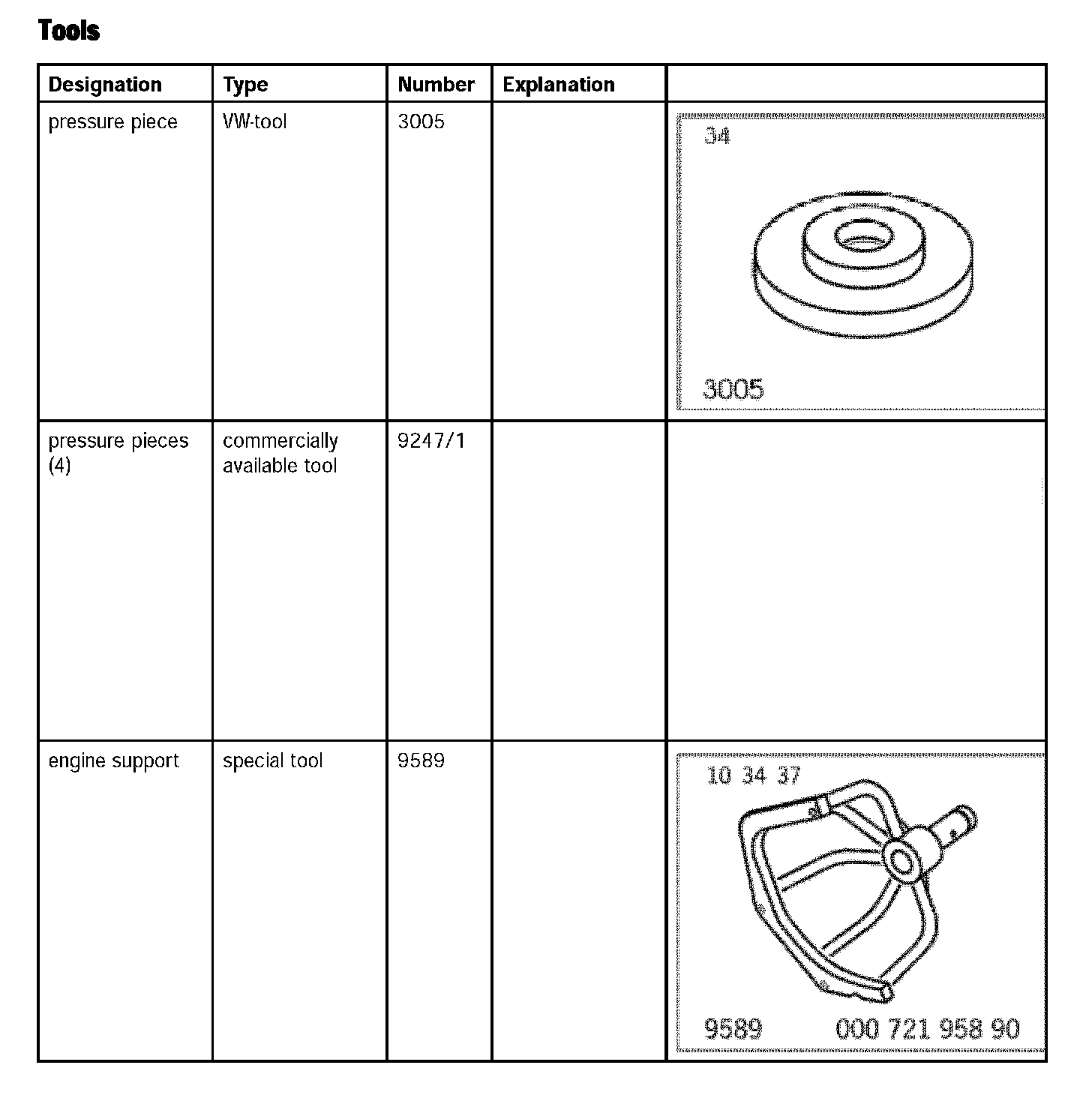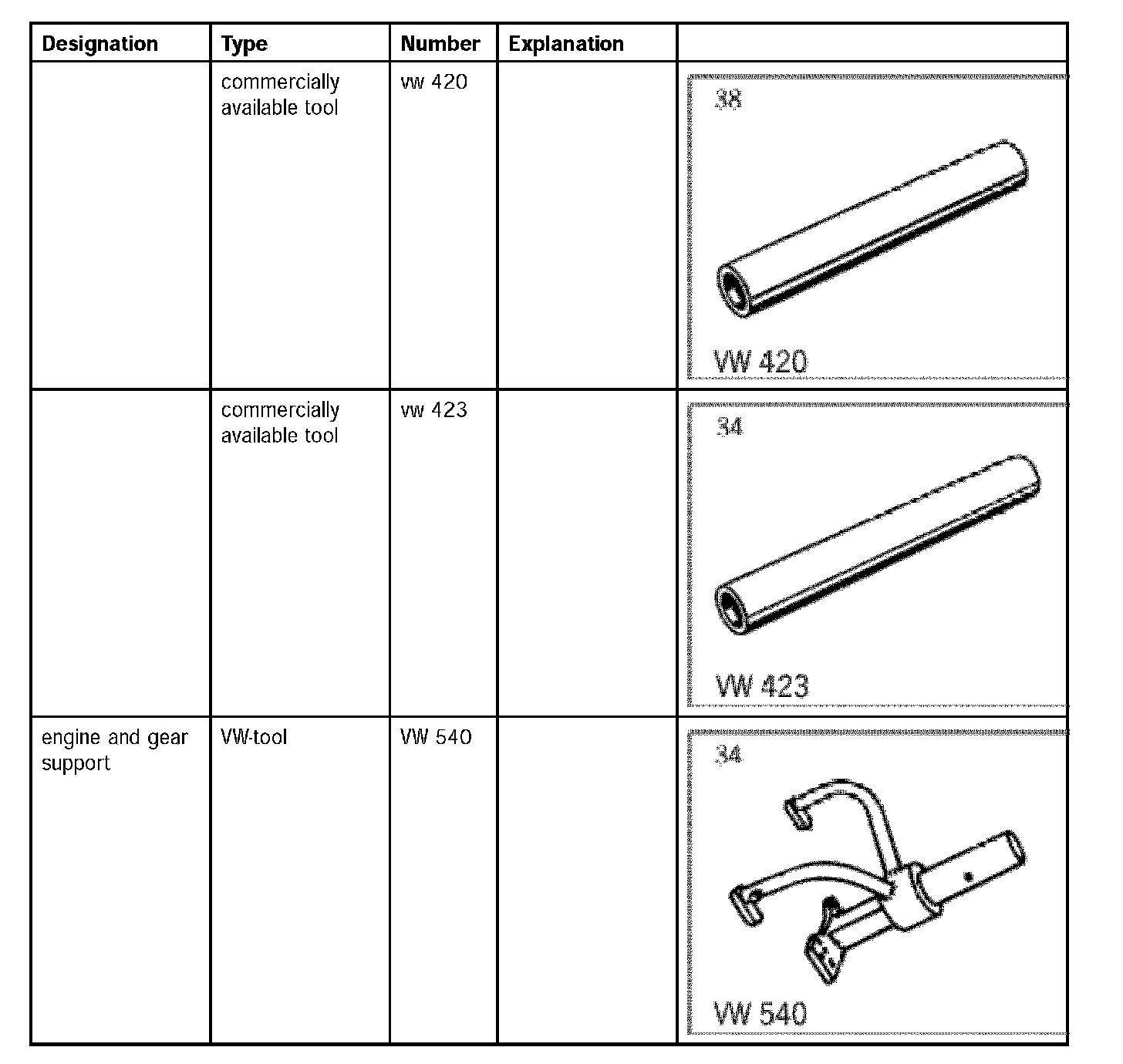 2. Tighten the transmission using engine support 9589 or engine and gear support VW 540 at the assembly support.