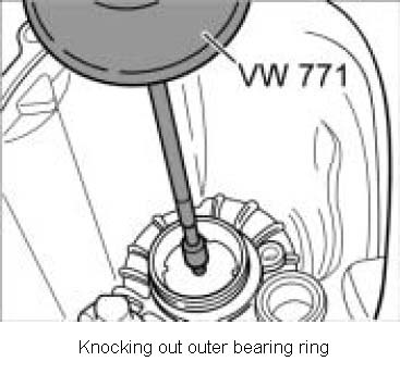 2. Remove outer bearing ring -8- with a suitable internal puller and striker vw 771.