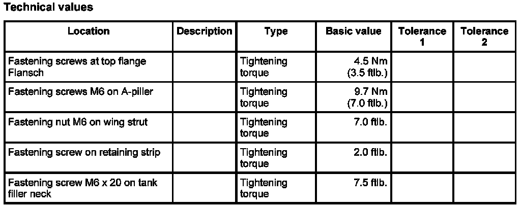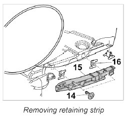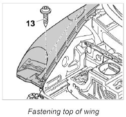 1. Clip fastening nuts -16- into place. Fix retaining strip -15- on the wing up against the stop and tighten with the fastening nuts -14-. Tightening torque: 2.0 ftlb.