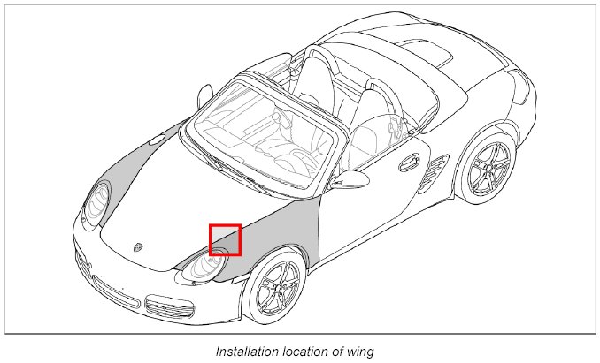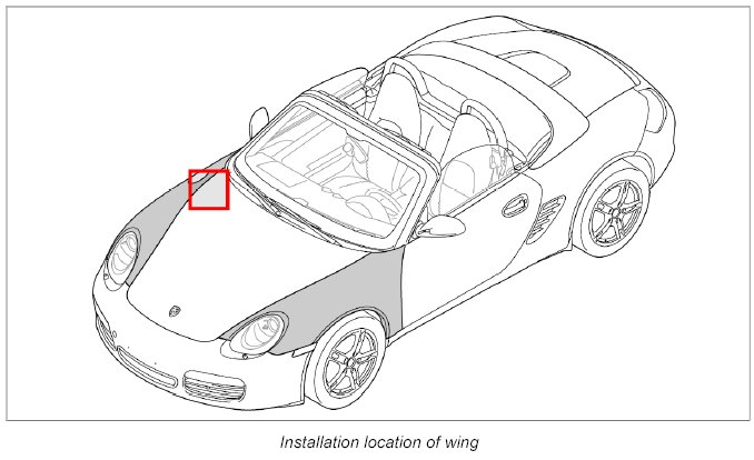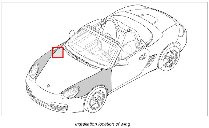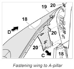 3. Position wing -19- on the body -C- and slide towards A-pillar -D-. Screw in fastening screws -18- into the A-pillar and tighten lightly.