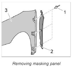 1. Press out pin from plastic expansion rivet -1- and remove masking panel -2- from wing -3-.