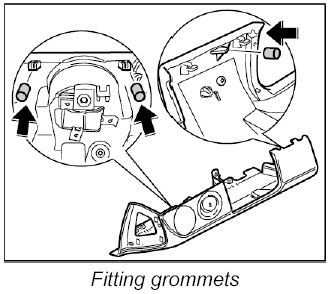 1. Fit grommets on the centring journals of the trim panel under the dashboard.