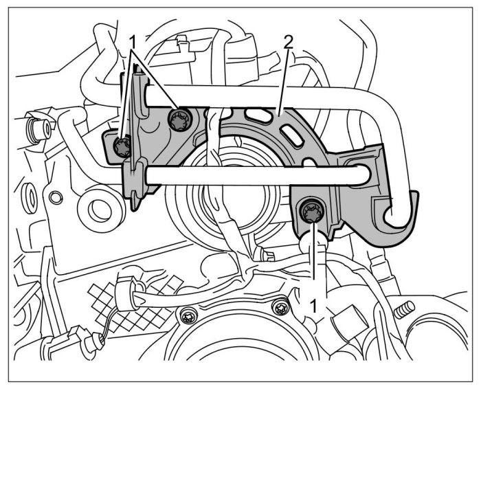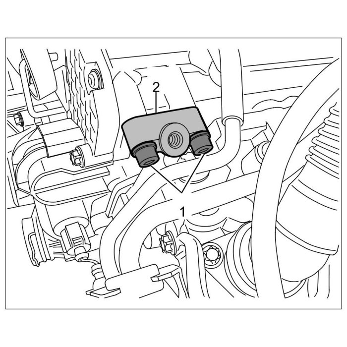 5. Loosen flange -2- for positive crankcase ventilation line -1-.