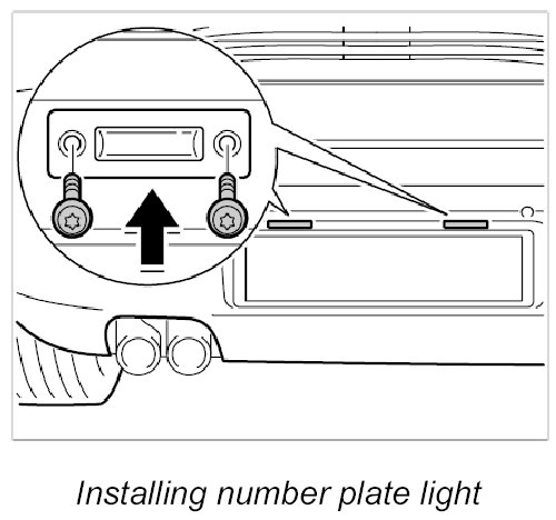 1. Insert number plate lights and tighten with the two fastening screws.