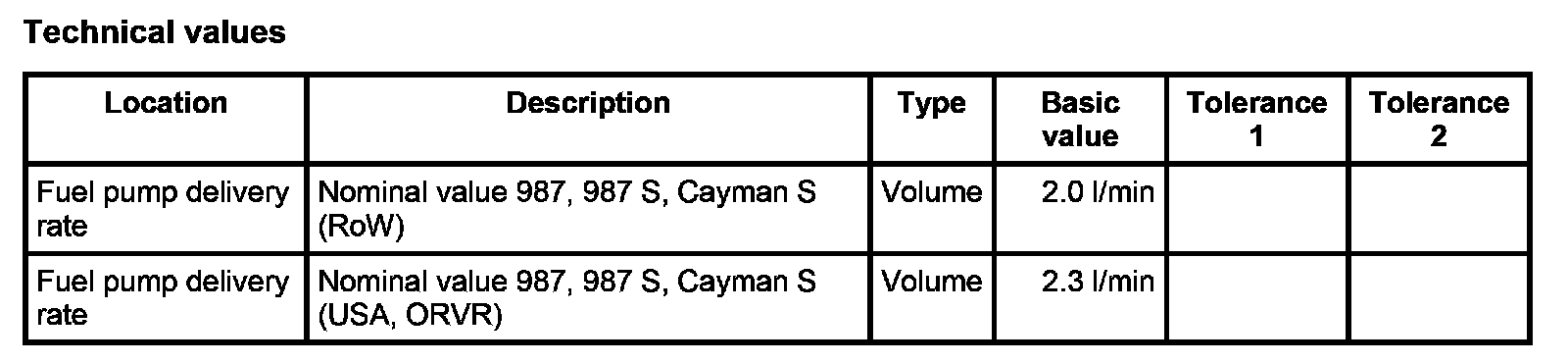 12. Pour the collected fuel into the measuring cup and compare the quantity with the vehicle-specific nominal values listed below. Volume: 2.0 l/min; Volume: 2.3 l/min