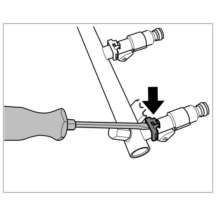 10. Connect fuel line -arrow-. The connector must engage audibly.