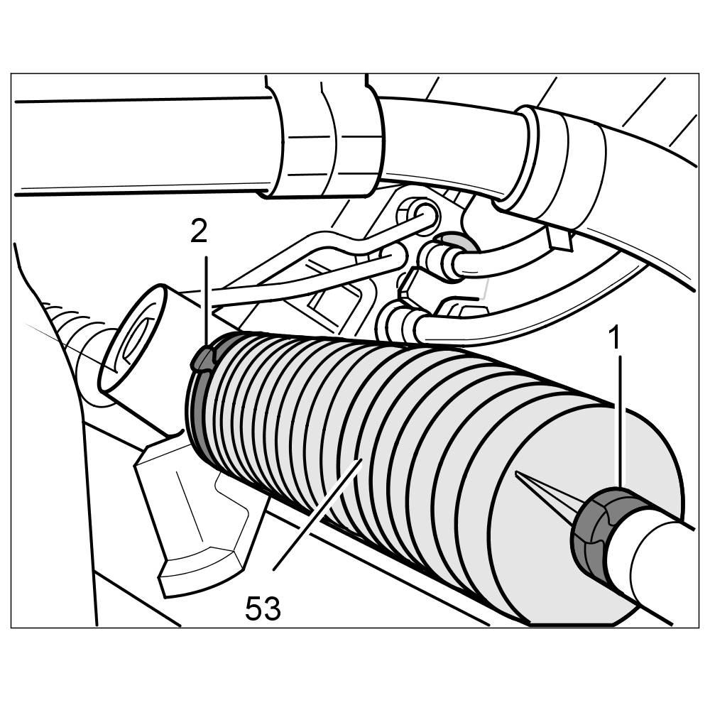 1.1. Remove the bellows -53- on the steering gear housing (remove clamping rings -1 and 2- and move the bellows as required -53- ).