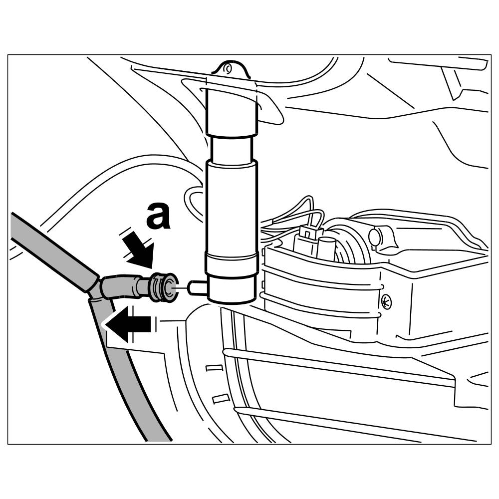 1. Release hose for headlight washer system -Arrow a- and pull it off the spray nozzle.