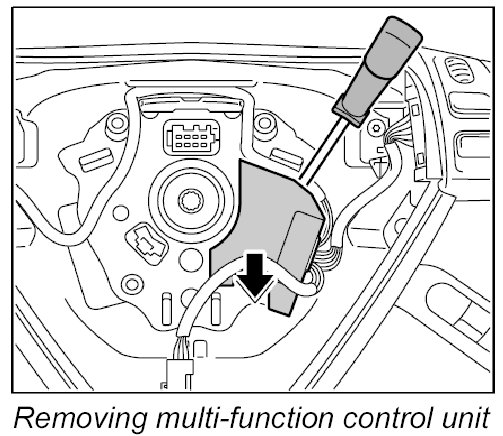 2. Use a screwdriver to carefully lever the multi-function control unit out of the steering wheel.