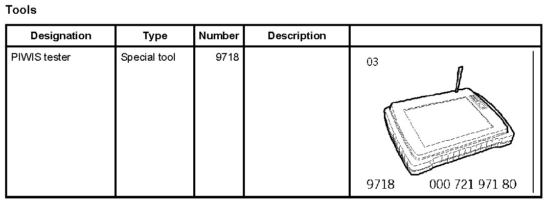 1. Connect the PIWIS tester 9718 to the vehicle and start it. Switch on the ignition. >> Continue.