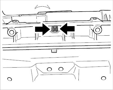 2. Loosen support for coolant pipes (screwed on 4x) and press together the support for coolant pipes in the centre -arrows- and unclip.