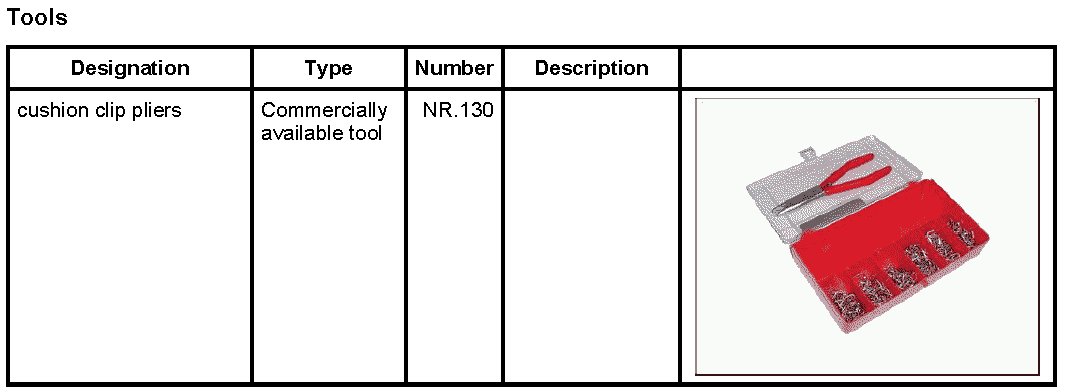 1. Position piping -2- for cover for middle backrest and padding -4- on the plastic frame -3-. Use the cushion clip pliers NR.130 and the cushion clips -1- to connect the cover strips and the plastic frame -3-.