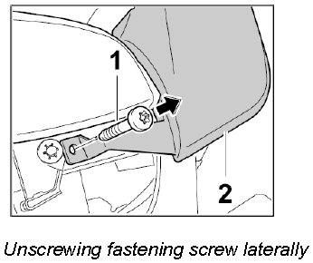 1. Unscrew fastening screw -1- laterally out of the cover -2-.