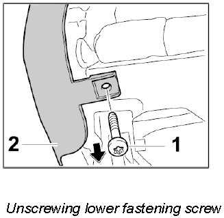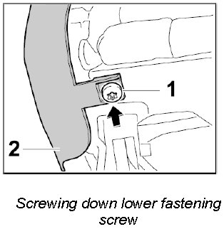 2. Unscrew lower fastening screw -1- out of the cover -2-.
