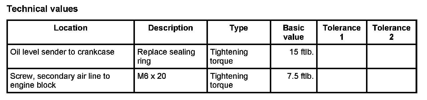 1. Insert oil-level sender together with a new sealing ring and tighten. -> Tightening torque: 15 ftlb.