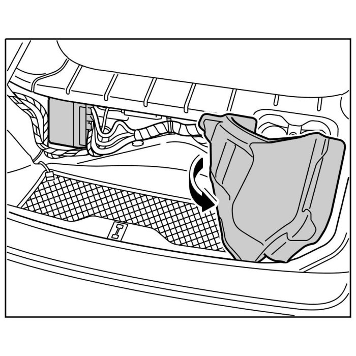 1. Open rear luggage-compartment lid, undo the carpet lining and place to one side.