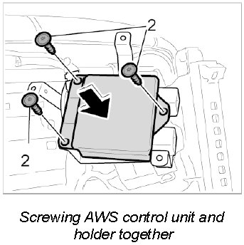 4. Unscrew the three fastening screws -2- of the AWS control unit and remove the control unit.