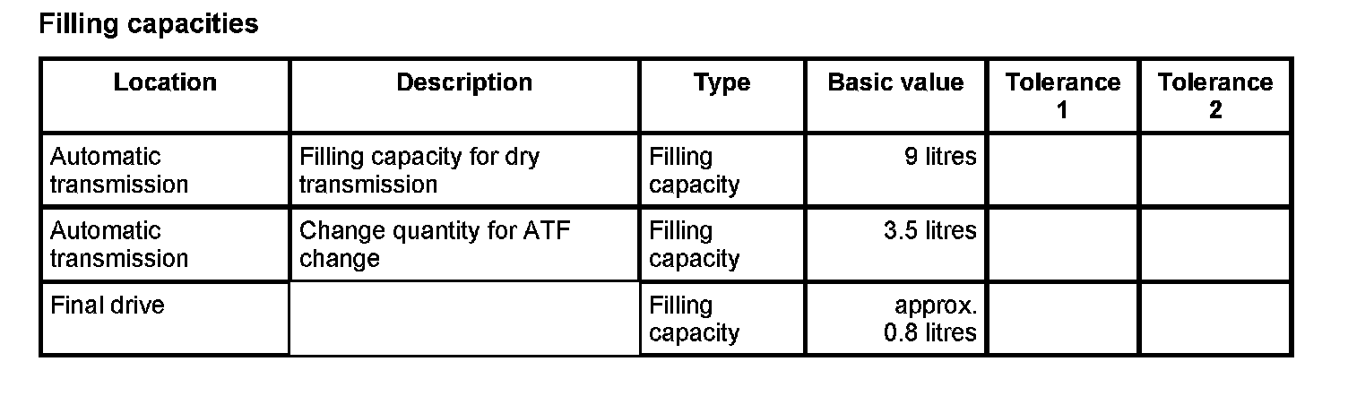 Technical data, automatic transmission