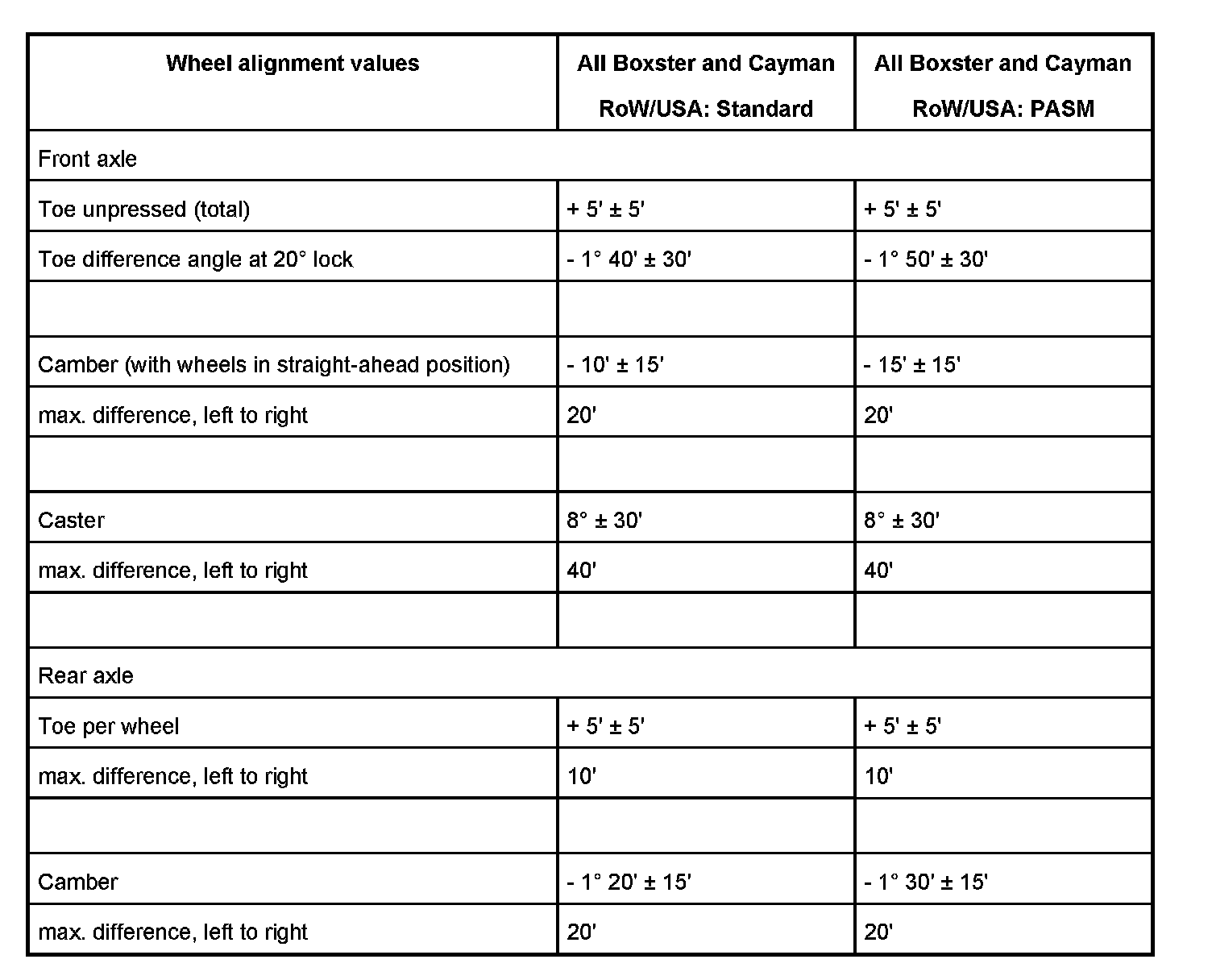 Wheel Alignment Values