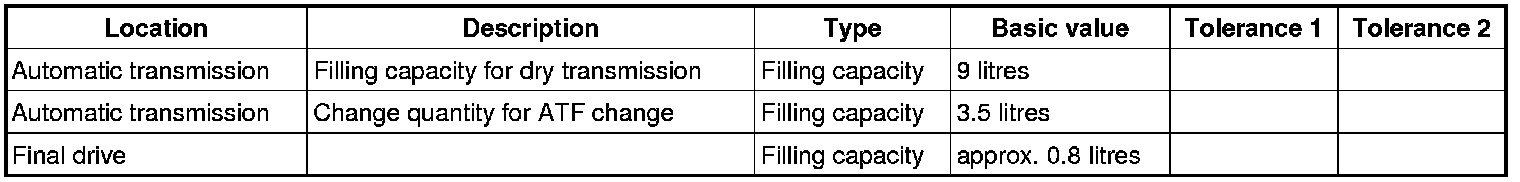 3X00IN02 Technical data, automatic transmission