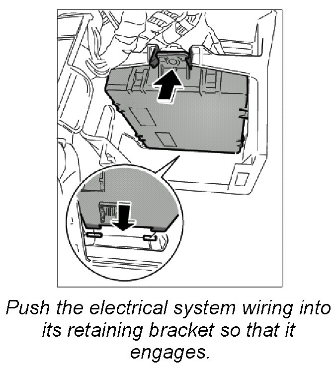 2. Push vehicle electrical system control unit upwards into the holder. It must engage properly. Make sure the electrical leads are not pinched.