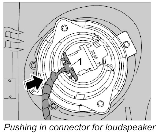 1. Push in connector for loudspeaker -1- until the locking tabs engage.