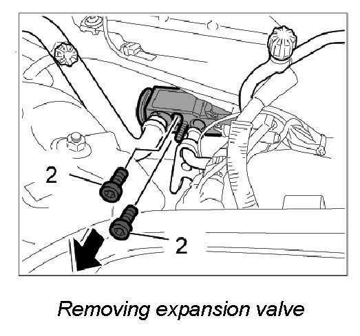 3. Unscrew fastening screws -2- and remove expansion valve.