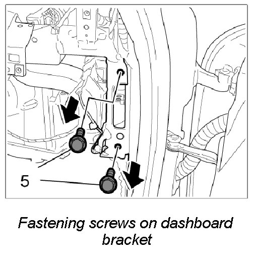 12. Screw down dashboard bracket with the two fastening screws -5-. - Tightening torque: 23 Nm (17 ftlb.)