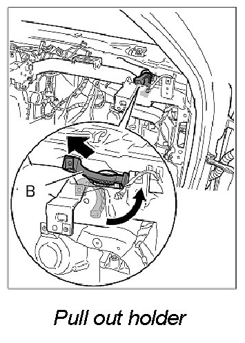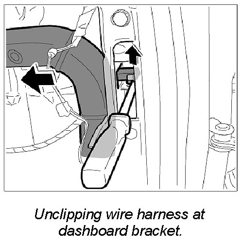 8. Unclip holder for electric harness with a screwdriver from right side of dashboard bracket.